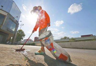 每天,灑水車(chē)經(jīng)過(guò)時(shí),路面都能蒸騰出一股熱浪,它告訴你,在上面煎牛排的話已經(jīng)到了七成熟。即使偶爾一陣微風(fēng),也帶著一股熱氣,讓人徒增煩躁。路上行駛的車(chē)輛紛紛緊閉了窗戶(hù)開(kāi)著冷氣。每一次車(chē)輛鳴笛駛過(guò),每一次塵土飛揚(yáng)飄落,他們揮舞著手中比自己還高的笤帚,將路中間的垃圾掃至路旁。他們?nèi)蔽溲b,戴著草帽、口罩、毛巾、袖套,身披橘紅色馬甲,機(jī)械地重復(fù)著一個(gè)動(dòng)作。頭頂是放肆的烈日,腳下是灼人的馬路,身旁是一輛接一輛飛馳而過(guò)的車(chē)輛,配著各種嘈雜的噪聲,這便是他們最真實(shí)的工作場(chǎng)景寫(xiě)照。一陣熱浪襲來(lái)過(guò),干卷的綠葉從行道樹(shù)上落下,塑料袋貼著地面低矮地跳躍,被莽撞的車(chē)流刮向馬路的中央。
